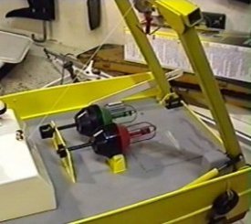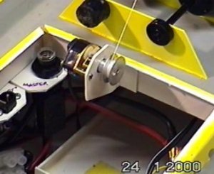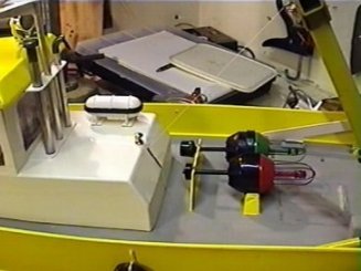 2. Trigger the lock release servo to lift the lock arm and allow the gantry to move out. The gantry will move out and is controlled by the winch cable until it reaches a stop. On mine once the gantry has passed the lock slot I have to return the servo to the locked position or it binds (& release again at the mid point). When the gantry reaches the slot in the end of the lock arm the winch pays out cable until empty (beware it would then start pulling in again and the switch would not stop it). The buoy floats free.