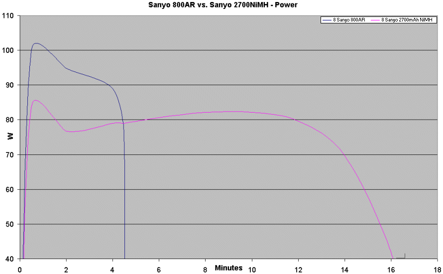 Sanyo 800AR cell vs. Sanyo 2700mAh NiMH cells (A size)